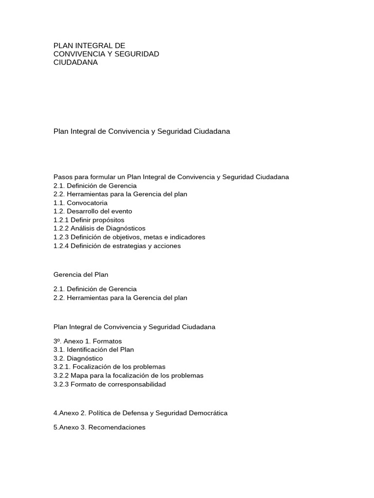 Un Plan Integral de Convivencia y Seguridad Ciudadana, es un conjunto