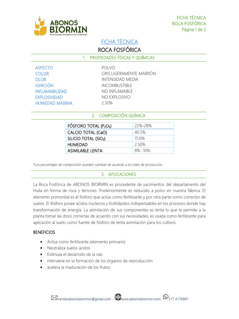 La Roca Fosfórica de ABONOS BIORMIN es procedente de yacimientos del departamento del