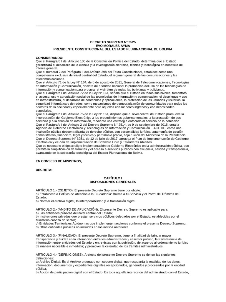 DECRETO SUPREMO N° 3525