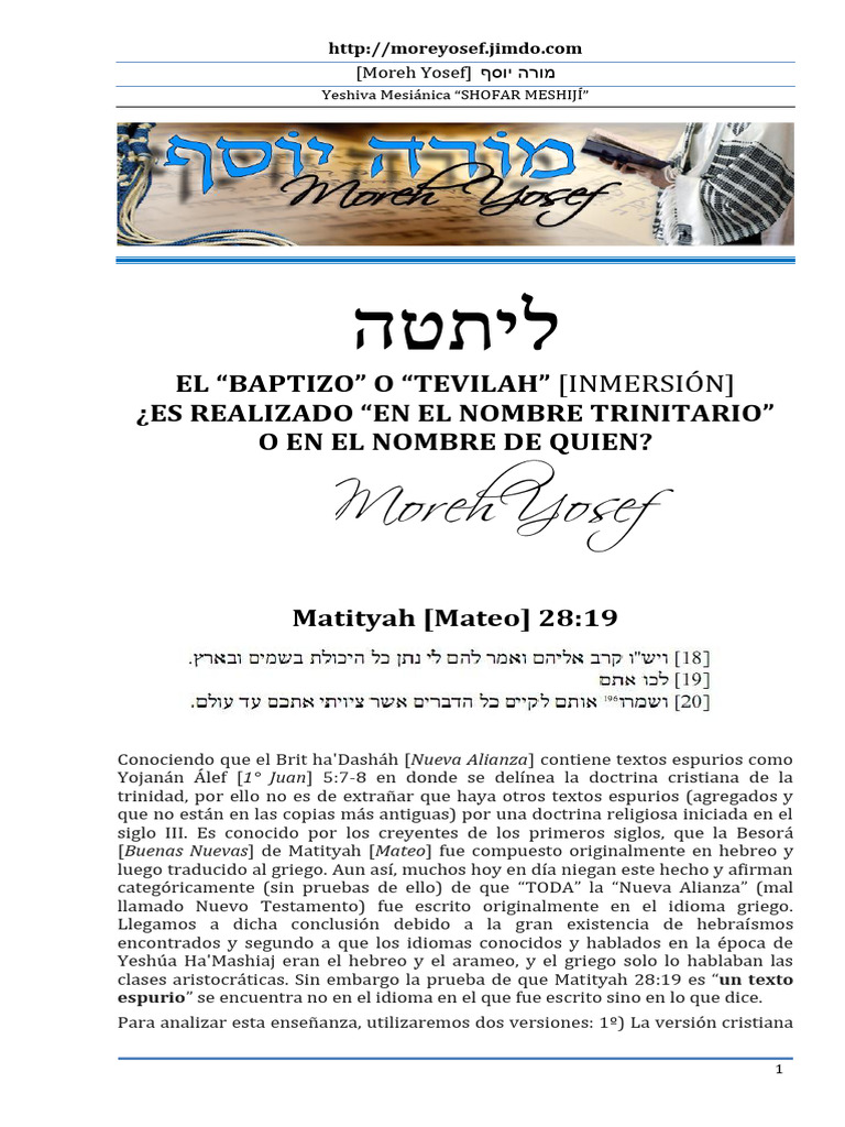 trinitaria”. La t'viláh al hacerse en el nombre de Yeshúa nos identifica con Él, y