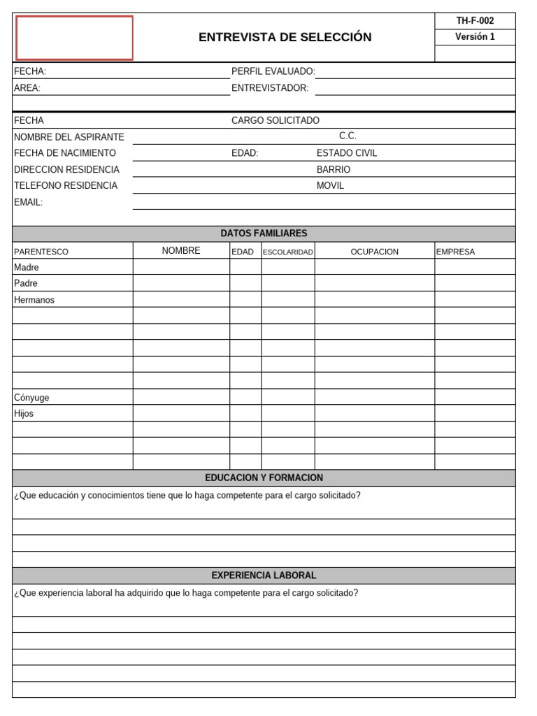ENTREVISTA DE SELECCIÓN Versión 1