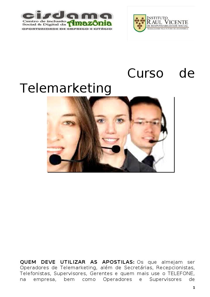 QUEM DEVE UTILIZAR AS APOSTILAS: Os que almejam ser Operadores de Telemarketing, alm de Secretrias, Recepcionistas, Telefonistas, Supervisores, Gerentes e quem mais use o TELEFONE, na empresa, bem como Operadores e Supervisores de