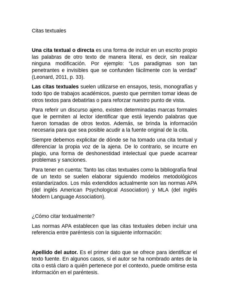 Las citas textuales suelen utilizarse en ensayos, tesis, monografías y