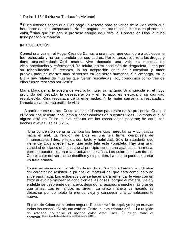 1 Pedro 1:18-19 (Nueva Traducción Viviente)