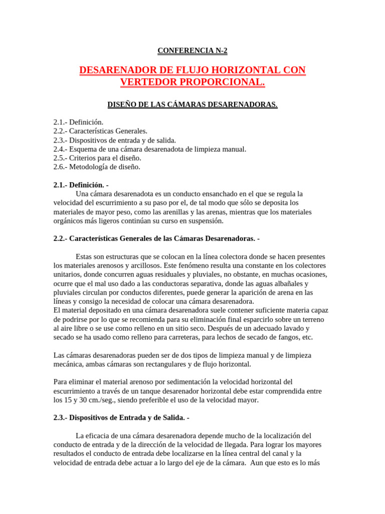2.2.- Características Generales de las Cámaras Desarenadoras. -