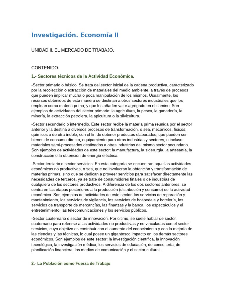 2.- La Población como Fuerza de Trabajo