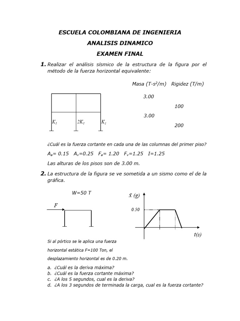 2. La estructura de la figura se ve sometida a un sismo como el de la