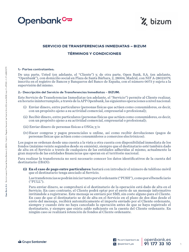 Open Bank, S.A. Domicilio social: Plaza de Santa Bárbara 2, 28004, Madrid - Registro Mercantil de Madrid, folio 202, tomo 5308, hoja M – 87030 - N.I.F. A28021079