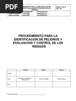 • Matriz de identificación de peligros y evaluación de riesgos.