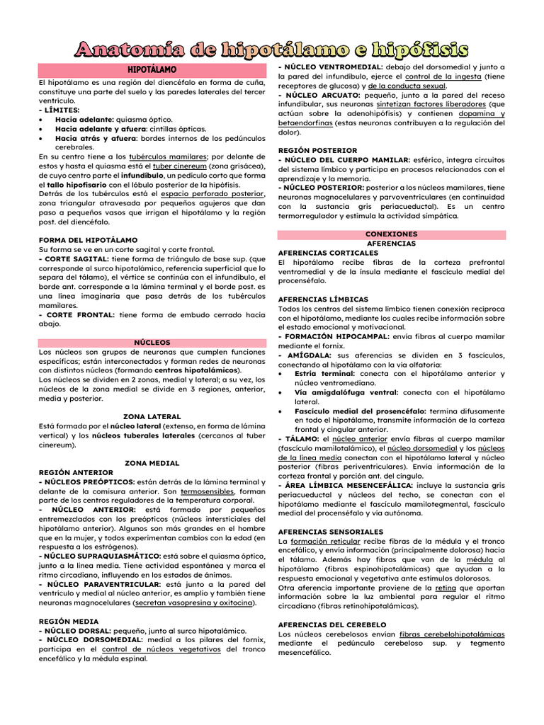 El hipotálamo es una región del diencéfalo en forma de cuña, receptores de glucosa) y de la conducta sexual.