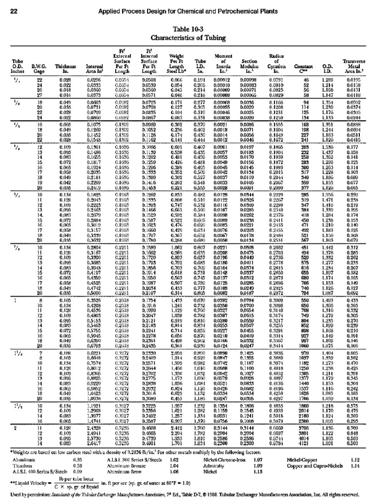 ‘Used by pension: Sudan of the Tia change Maaictunrs Aucoin, 78 El, Table D7, 8 1988, Tubular Exchanger Manufacturers Asocation, Tne All ights reser,