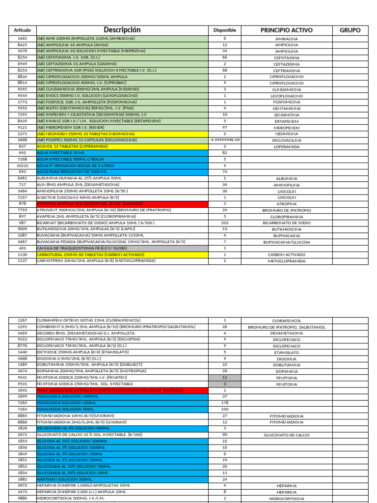 Artículo Descripción Disponible PRINCIPIO ACTIVO GRUPO