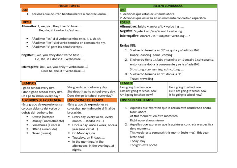 1. Acciones que ocurren habitualmente o con frecuencia. 1. Acciones que están ocurriendo ahora.