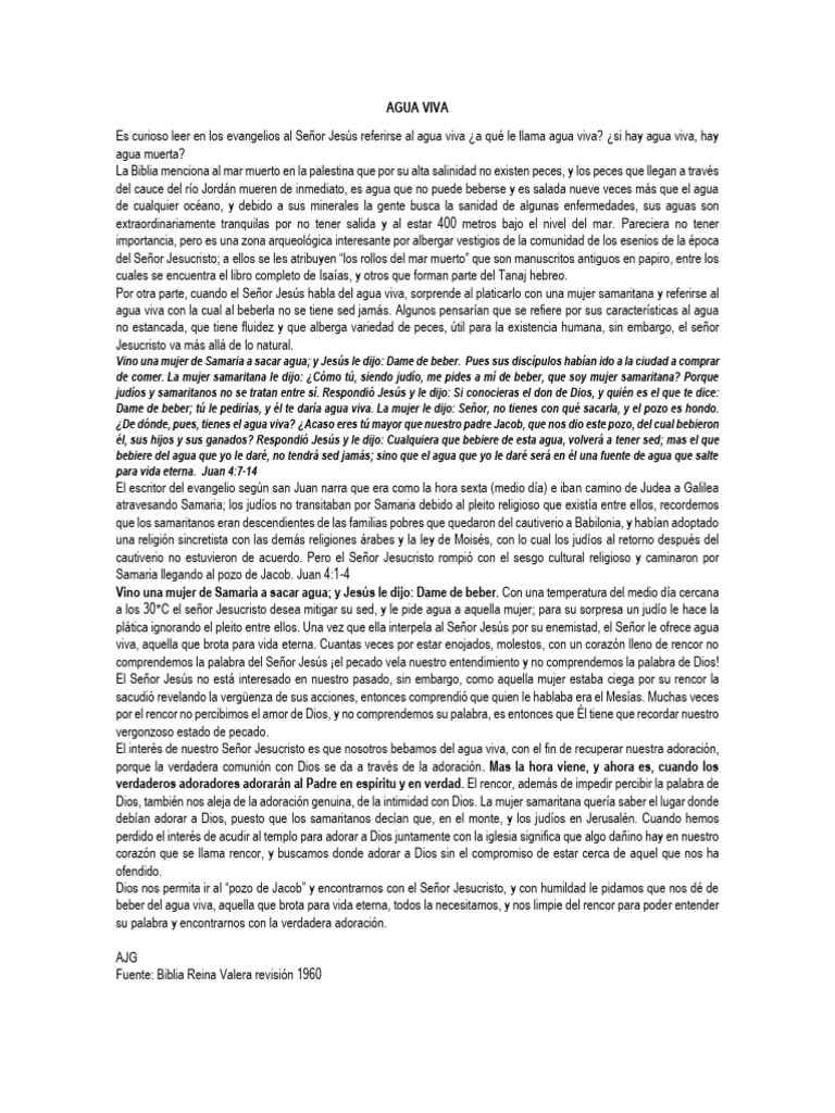Es curioso leer en los evangelios al Señor Jesús referirse al agua viva ¿a qué le llama agua viva? ¿si hay agua viva, hay
