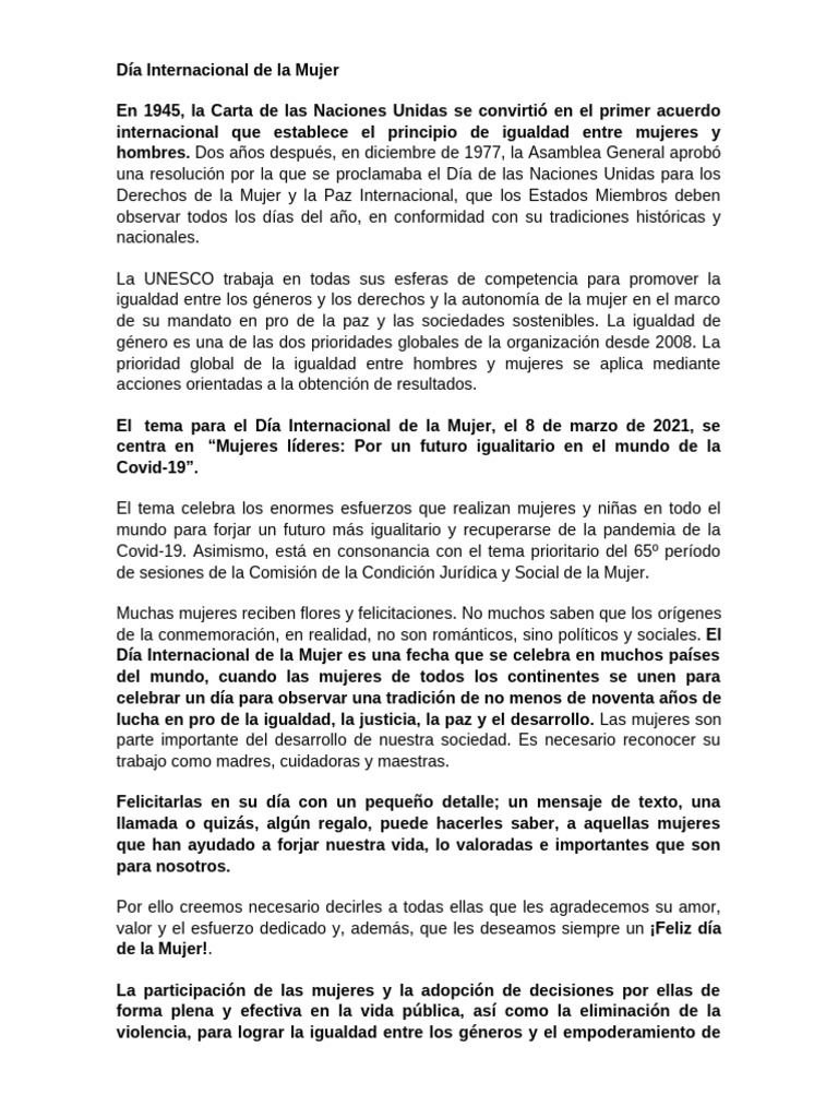 Día Internacional de la Mujer es una fecha que se celebra en muchos países