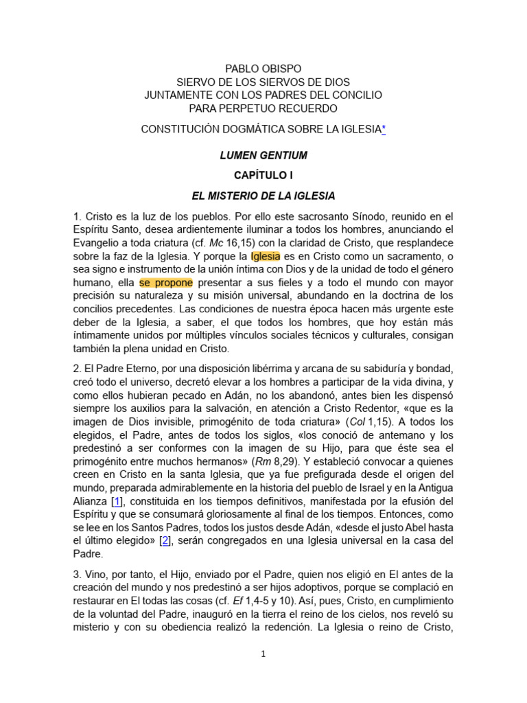 1. Cristo es la luz de los pueblos. Por ello este sacrosanto Sínodo, reunido en el