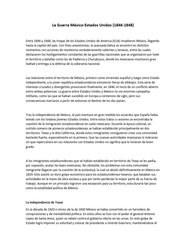 Entre 1846 y 1848, las tropas de los Estados Unidos de América (EUA) invadieron México, llegando