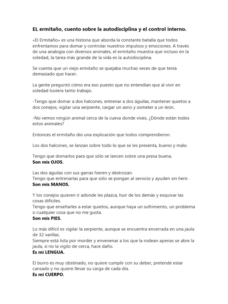 EL ermitaño, cuento sobre la autodisciplina y el control interno.