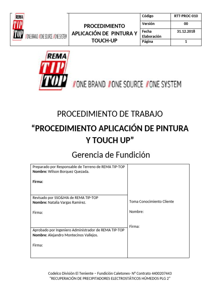 Revisado por SSO&MA de REMA TIP-TOP