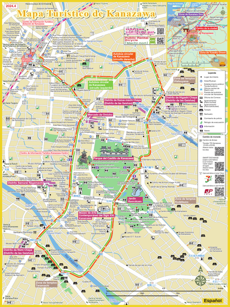 Abono de un día: Estación de Kanazawa Puerta Kenrokuen (Puerta Este) Estación de Autobuses Autobús circular de Kanazawa Autobús circular de Kanazawa 12