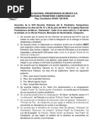 pastor dará su primicia cada pastor titular nombrará un tesorero el cual informará