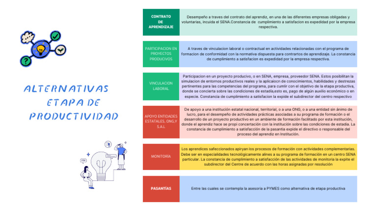 Participacion en un proyecto producivo, o en SENA, empresa, proveedor SENA. Estos posibilitan la