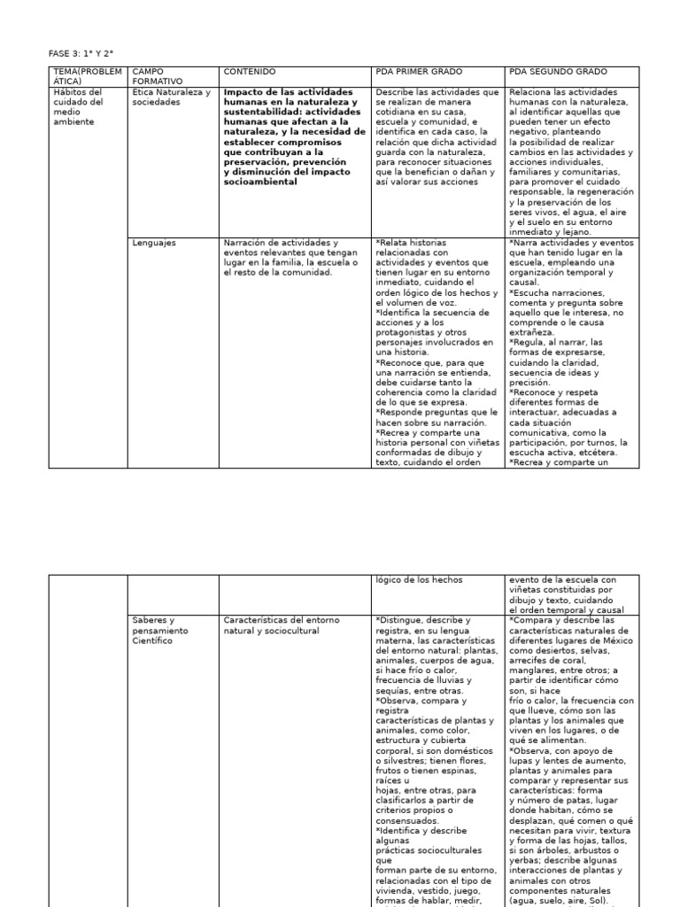 TEMA(PROBLEM CAMPO CONTENIDO PDA PRIMER GRADO PDA SEGUNDO GRADO