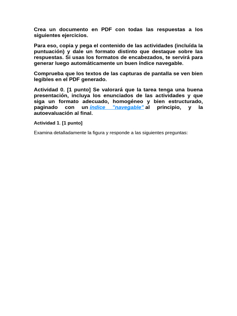 Actividad 0. [1 punto] Se valorará que la tarea tenga una buena