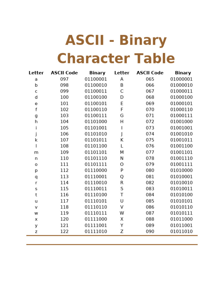 Letter ASCII Code Binary Letter ASCII Code Binary