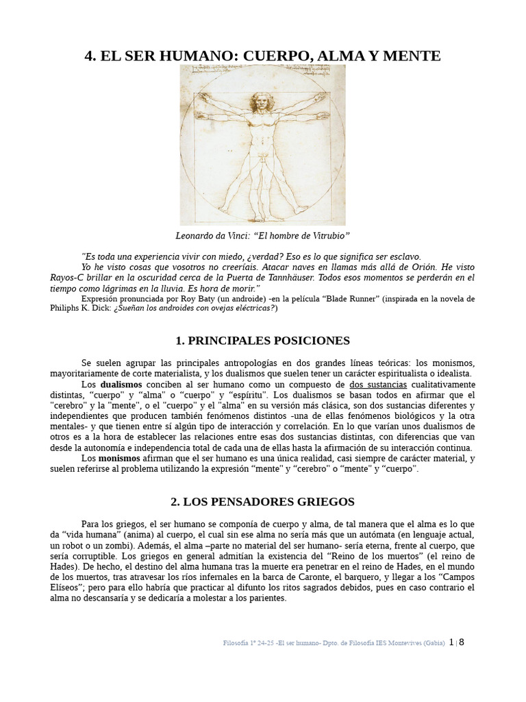 EL SER HUMANO: CUERPO, ALMA Y MENTE