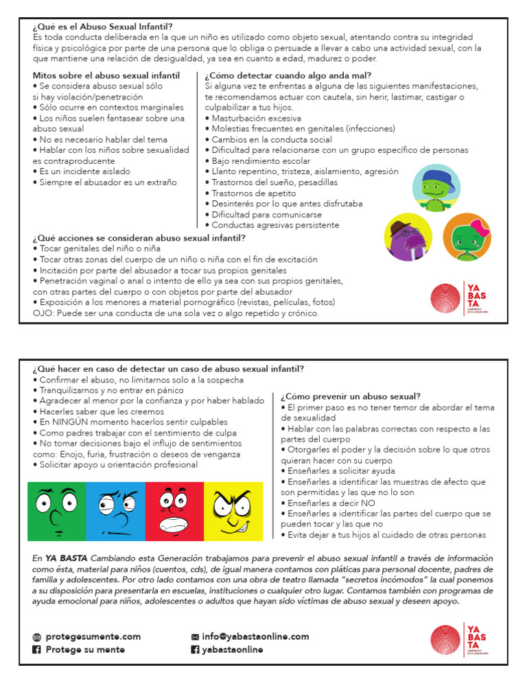 En YA BASTA Cambiando esta Generación trabajamos para prevenir el abuso sexual infantil a través de información