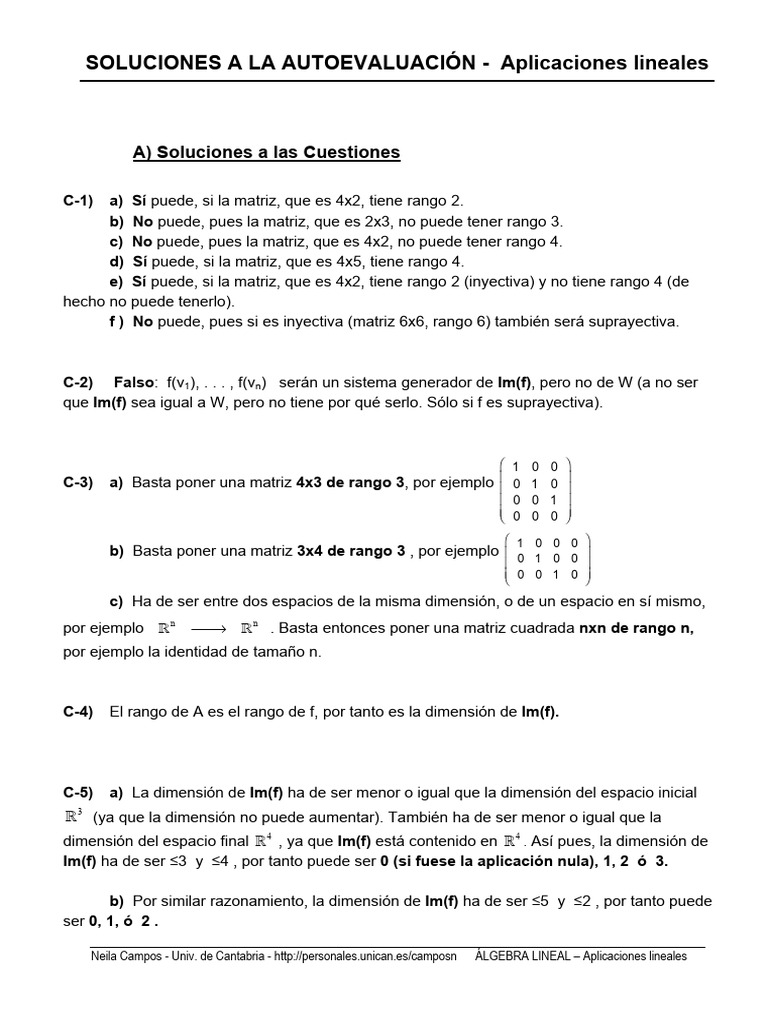 SOLUCIONES A LA AUTOEVALUACIÓN - Aplicaciones lineales