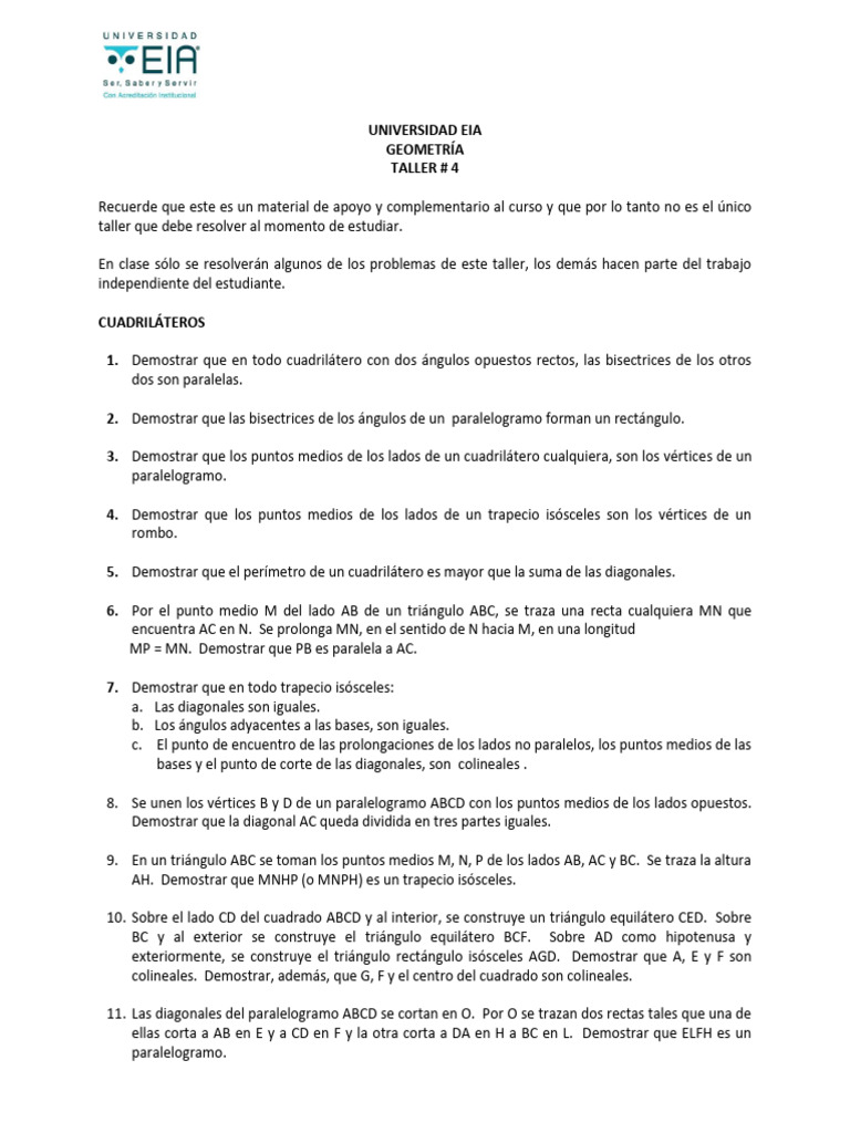 En clase sólo se resolverán algunos de los problemas de este taller, los demás hacen parte del trabajo