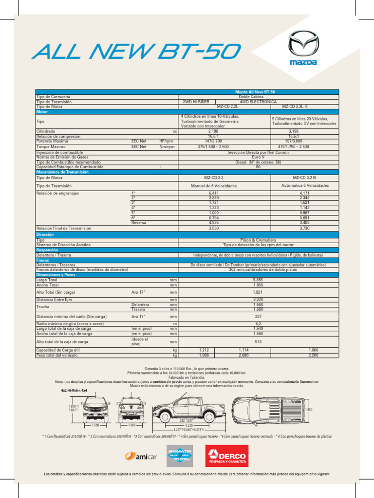 Tipo de Motor MZ-CD 2.2L MZ-CD 3.2L I5