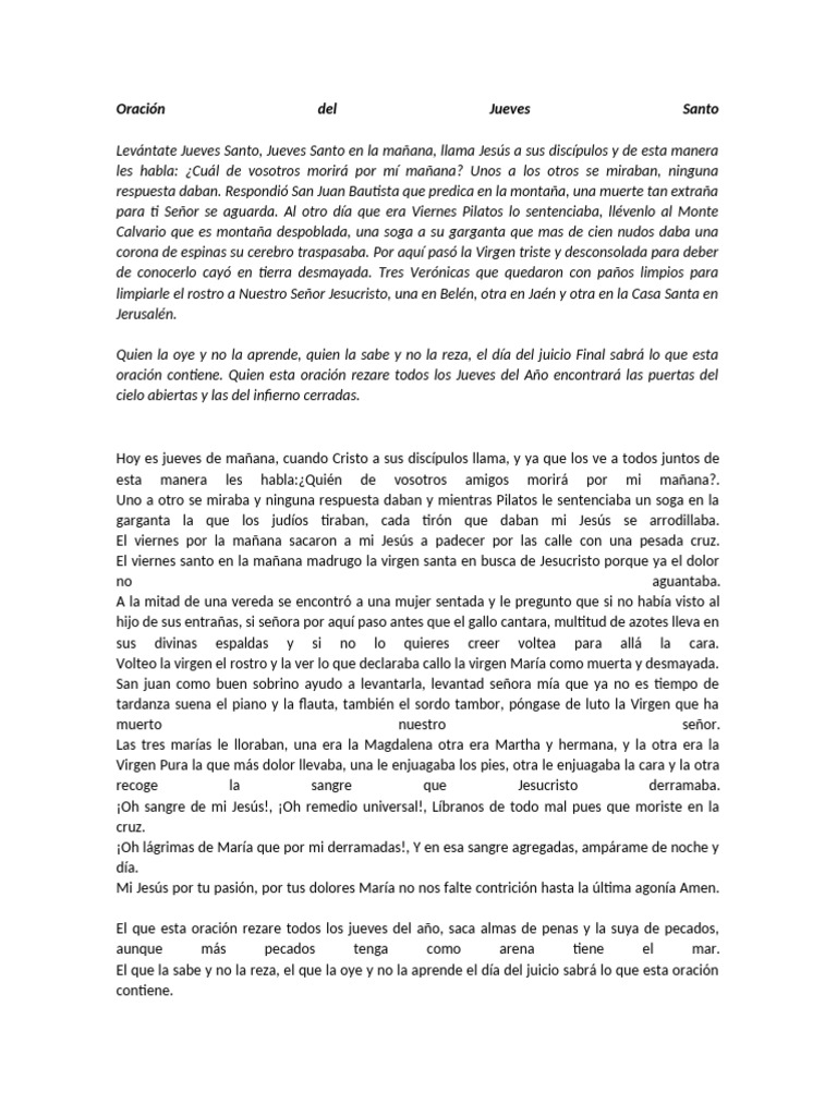 Oración Del Jueves Santo
