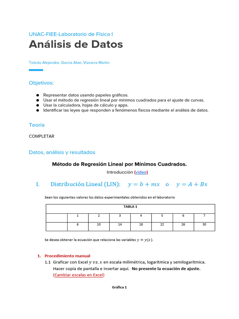 Complete la Tabla 1. (Método de mínimos cuadrados)(Graficar con Excel)(Ecuación de