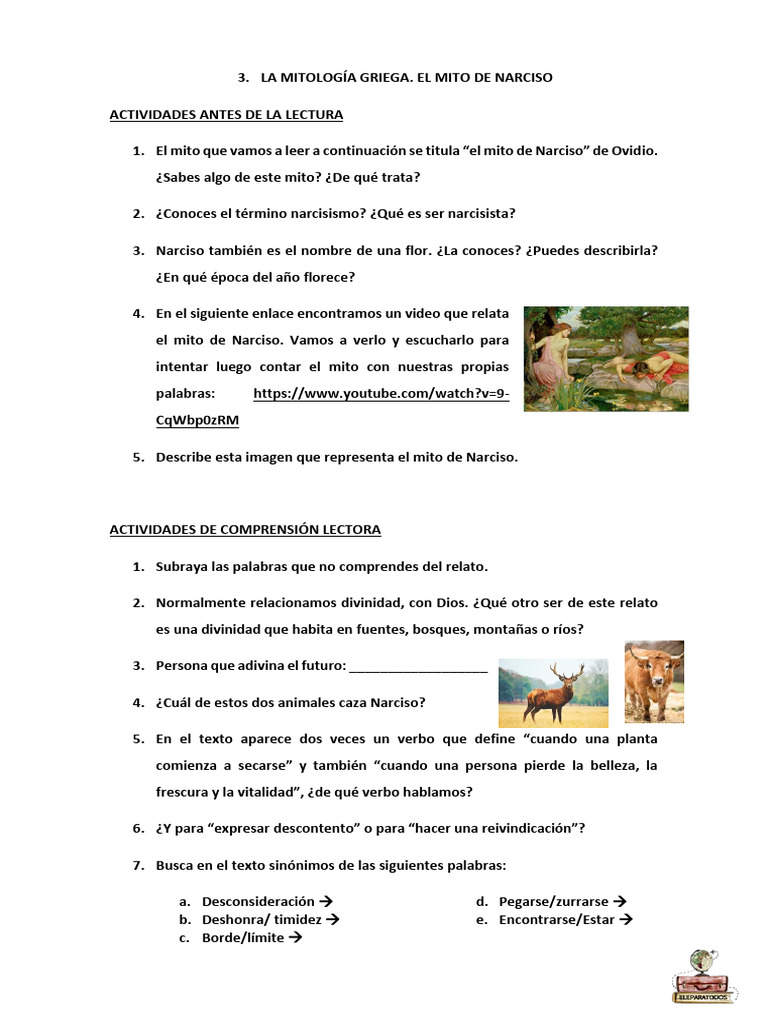 1. El mito que vamos a leer a continuación se titula “el mito de Narciso” de Ovidio.