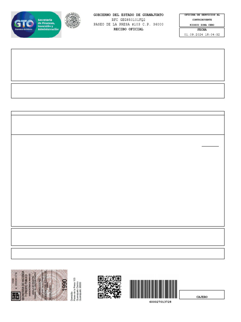 PASEO DE LA PRESA #103 C.P. 36000 KIOSCO ZONA CERO