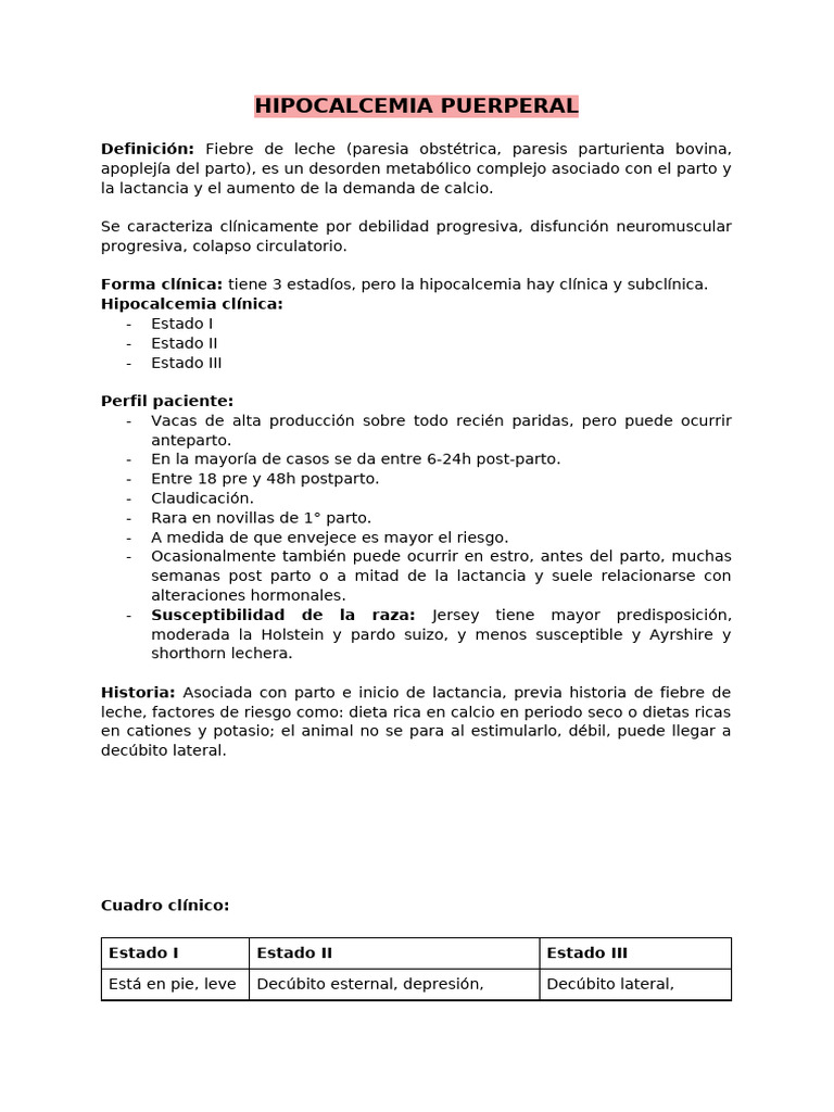 Forma clínica: tiene 3 estadíos, pero la hipocalcemia hay clínica y subclínica.