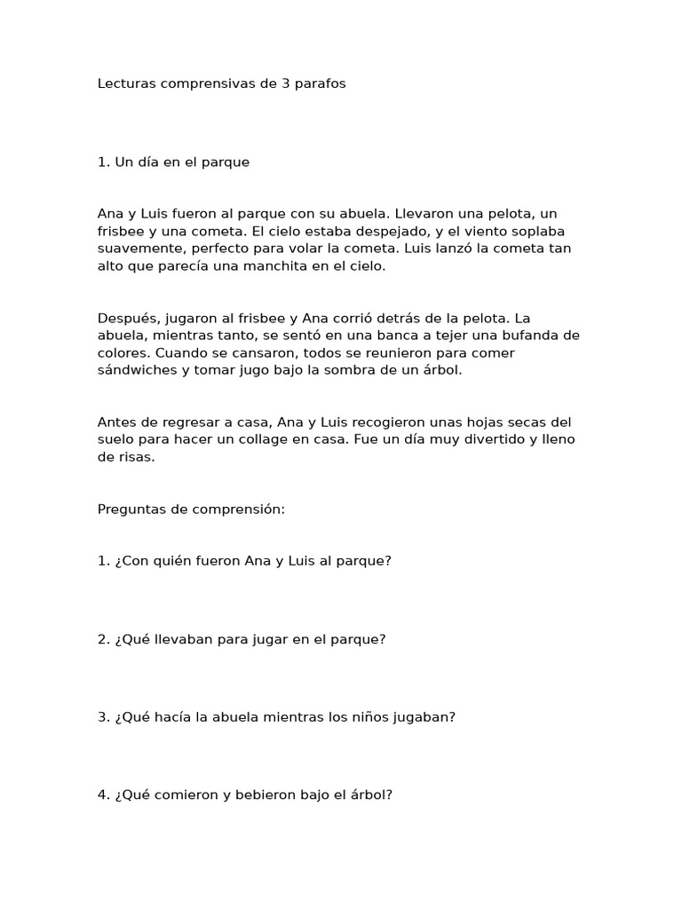 Lecturas comprensivas de 3 parafos
