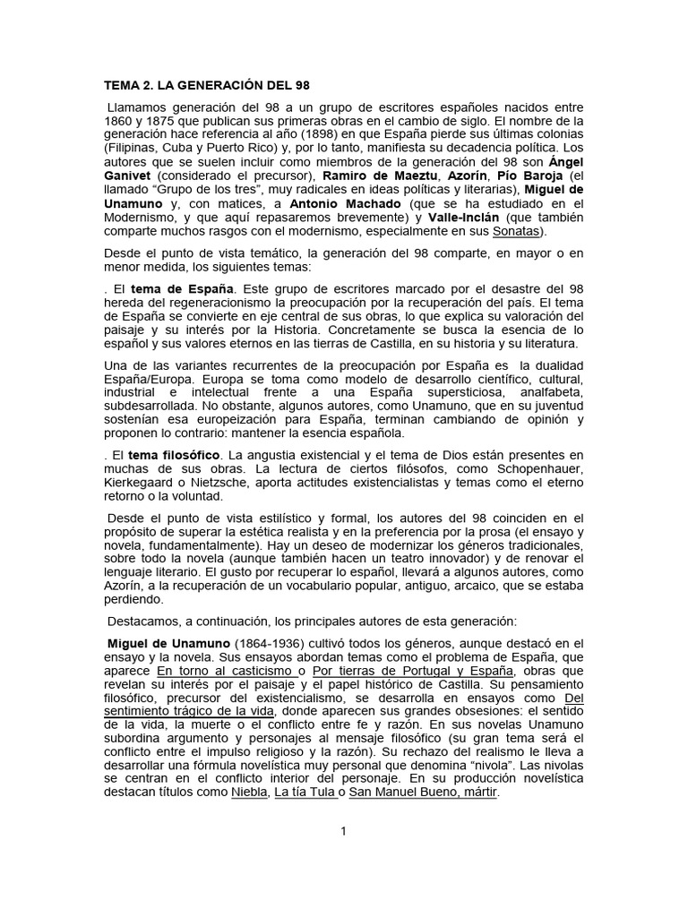 Desde el punto de vista temático, la generación del 98 comparte, en mayor o en