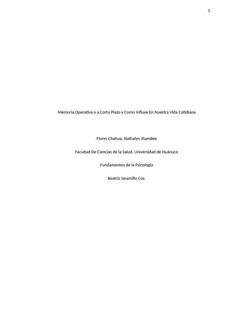 Memoria Operativa o a Corto Plazo y Como Influye En Nuestra Vida Cotidiana