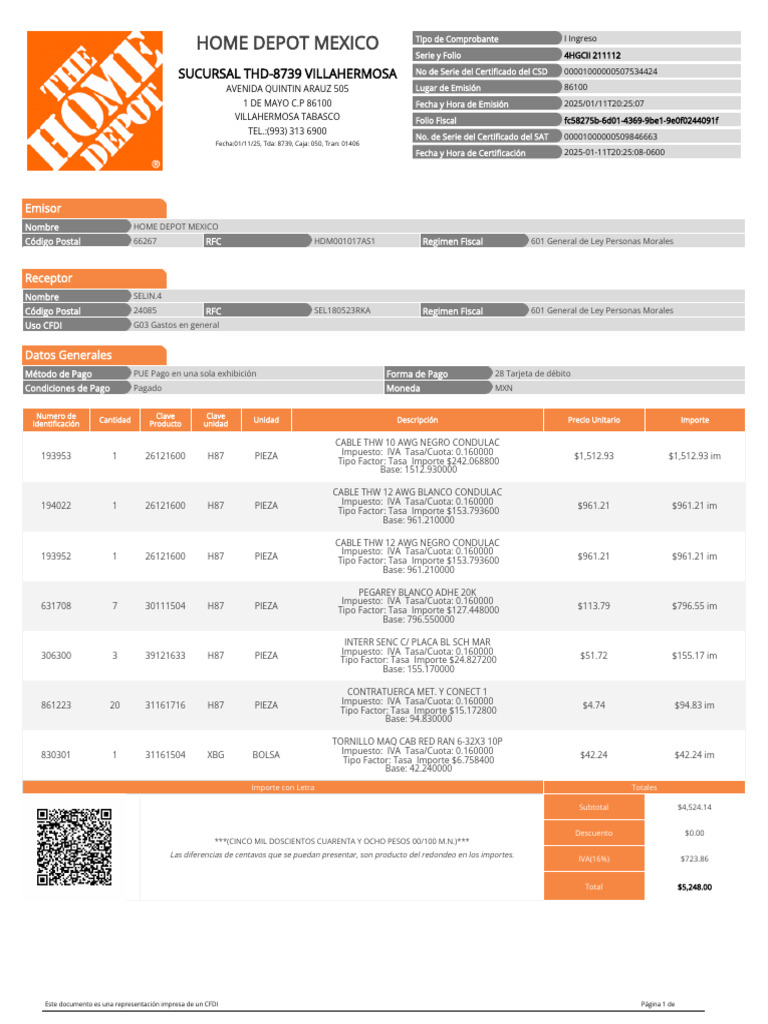 1 DE MAYO C.P 86100 Fecha y Hora de Emisión 2025/01/11T20:25:07