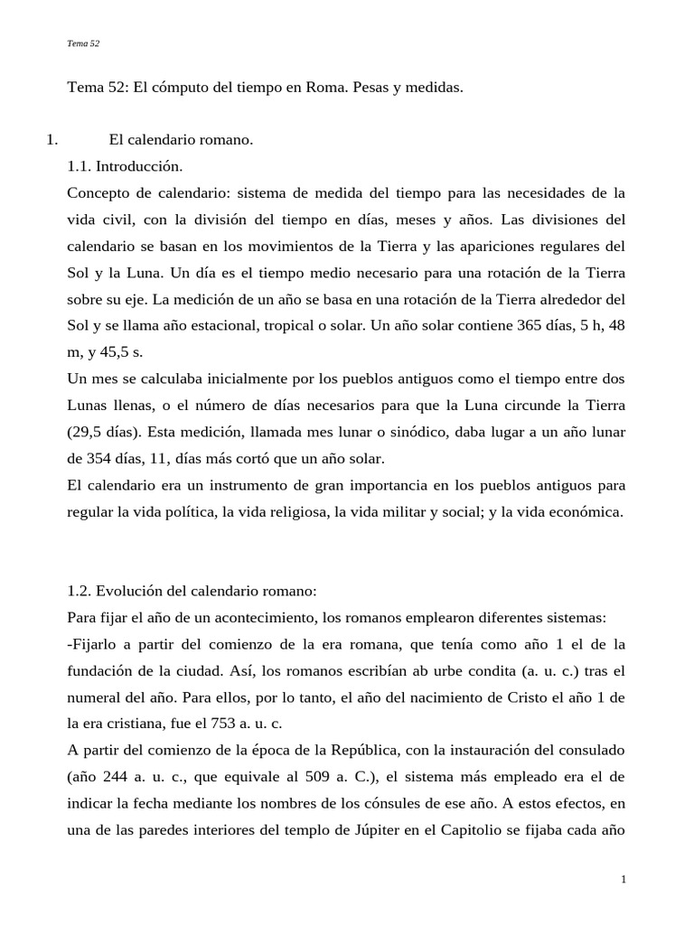 Tema 52: El cómputo del tiempo en Roma. Pesas y medidas.