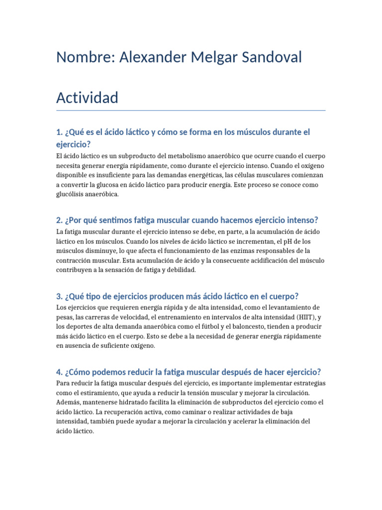 2. ¿Por qué sentimos fatiga muscular cuando hacemos ejercicio intenso?
