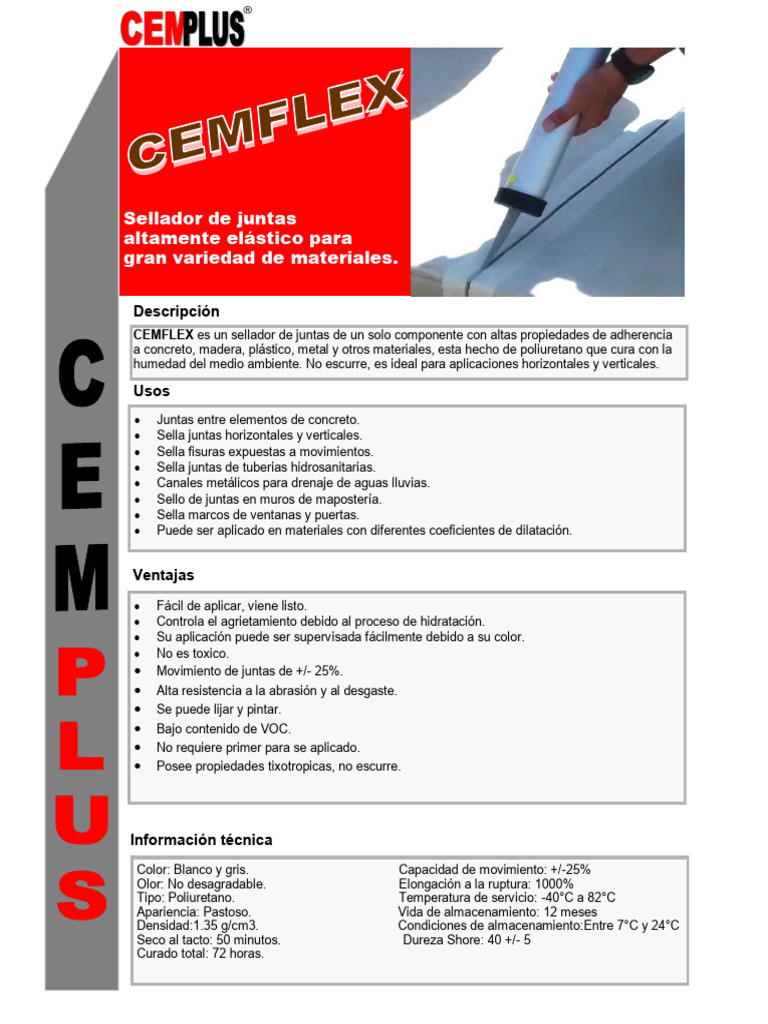 CEMFLEX es un sellador de juntas de un solo componente con altas propiedades de adherencia
