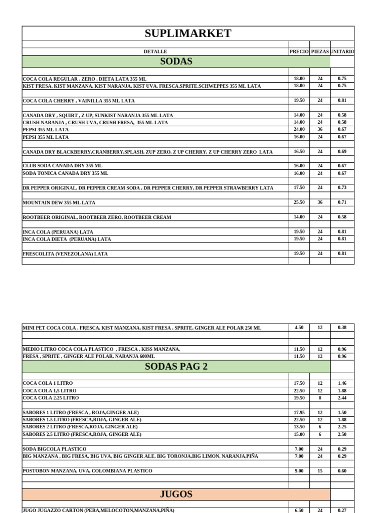 SABORES 2.5 LITRO (FRESCA,ROJA, GINGER ALE) 15.00 6 2.50