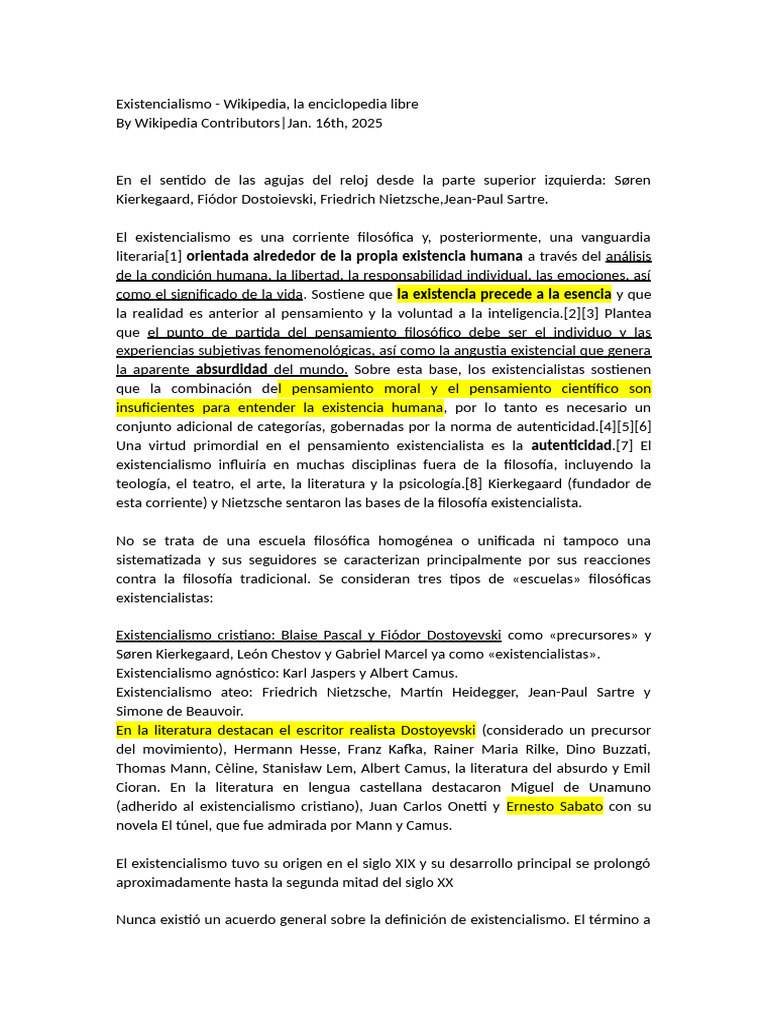 ↑ Existentialism. October 2010. Consultado el 12 de abril de 2012.
