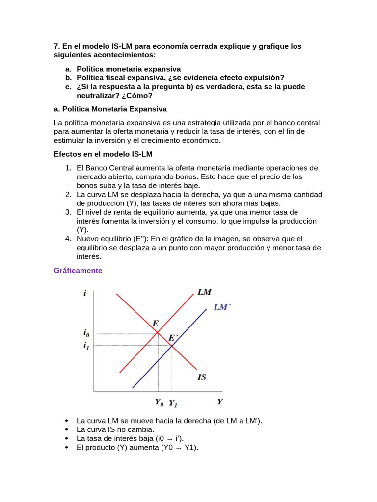 En el modelo IS-LM para economía cerrada explique y grafique los