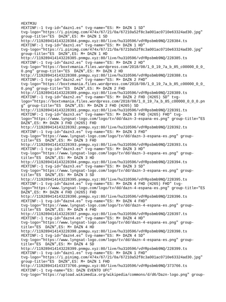 #EXTINF:-1 tvg-id="dazn1.es" tvg-name="ES: M+ DAZN 1 SD"
